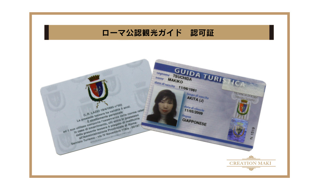 はじめまして。サイトを御覧下さいましてありがとうございます。ローマ公認観光ガイド・旅行企画を行なっている「クリエイション・マキ」の代表土田満貴子と申します。